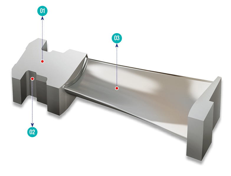 Turbine blades are twisted and assembled in the turbine rotor, converting steam energy into rotational motion. The blades should be highly durable and corrosion- and erosion-resistant, with good fatigue and fracture strength under high-temperature and high-pressure conditions. Special alloy steels, such as forged stainless, are frequently used for the components.
