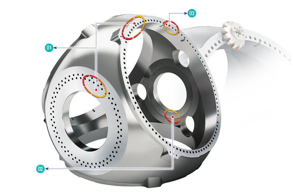 to the nacelle using a shaft and bearing assembly. It is casted in a special type